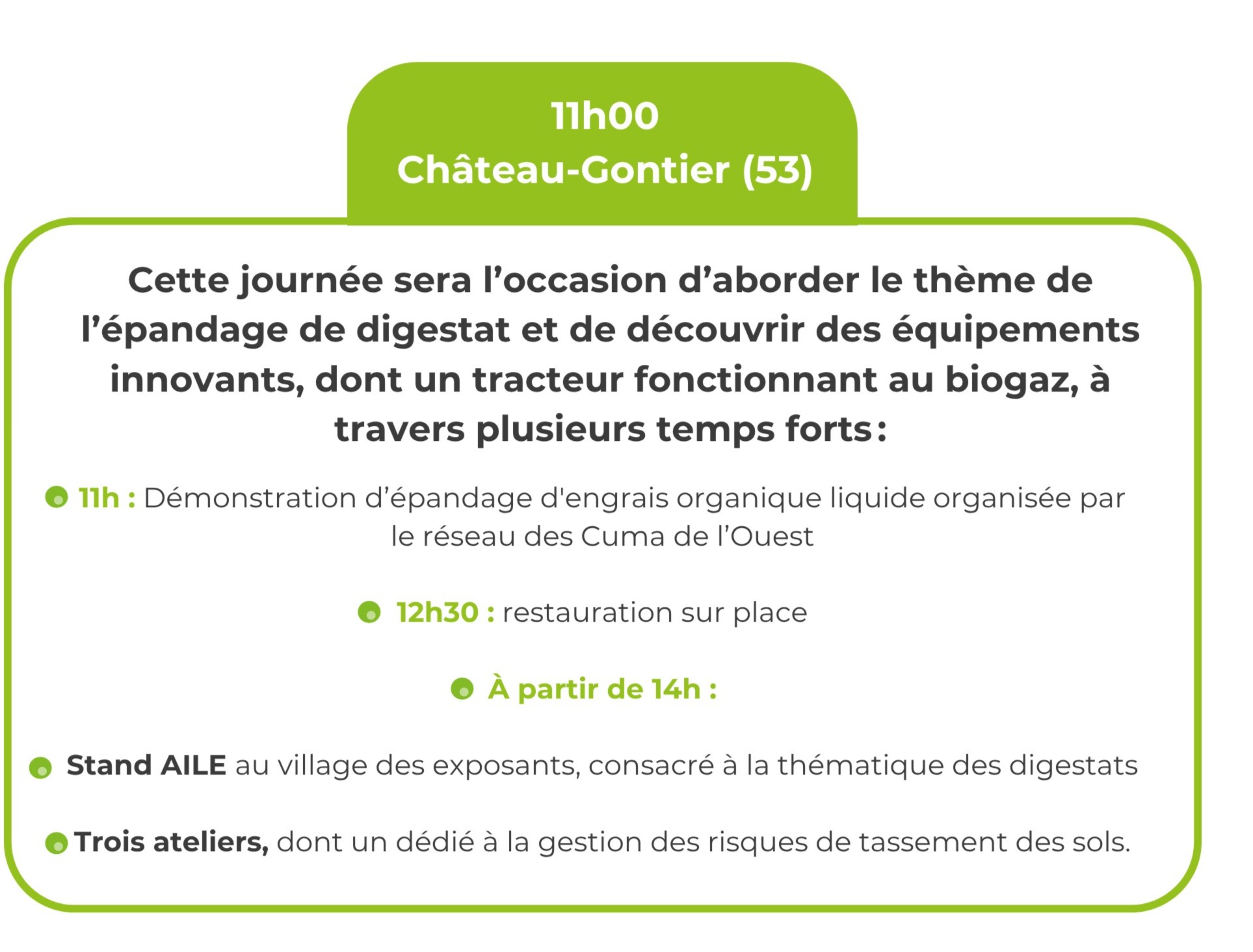 Dans la suite des événements pour fêter ses 30 ans, AILE vous donne rendez-vous à Méca’Innov pour explorer différents aspects liés au digestat